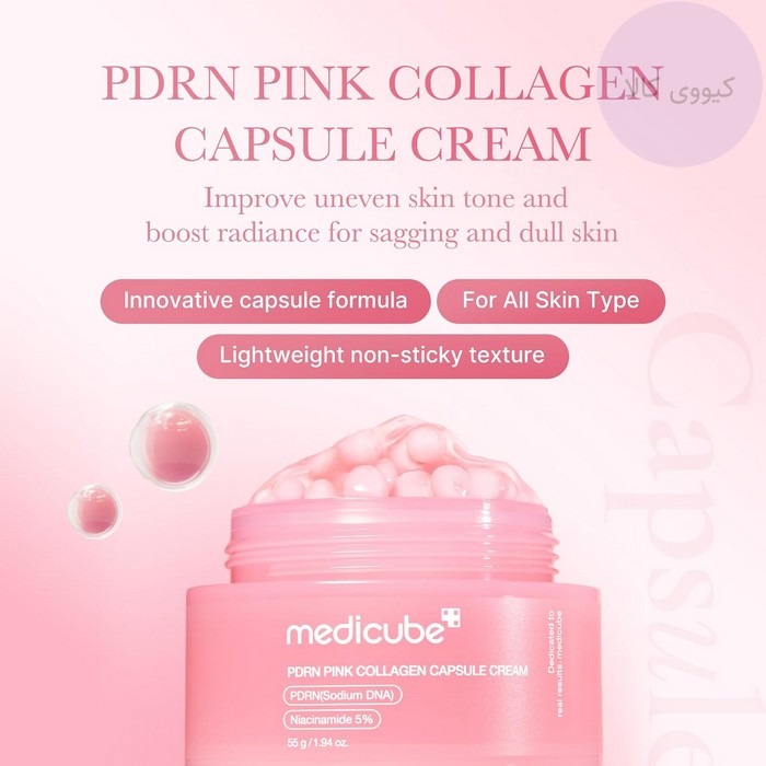 بافت این کرم ،کپسولی و سبک است و به سرعت جذب پوست می شود، بدون ایجاد حس چسبندگی یا سنگینی. کپسوله ای موجود در کرم به آرامی در هنگام ماساژ حل شده و ترکیبات فعال را به عمق پوست منتقل می کنند.کرم PDRN Pink Collagen Capsule محصولی از برند معتبر مدی کیوب کره جنوبی است که و در بسته بندی 55 گرمی عرضه می شود.